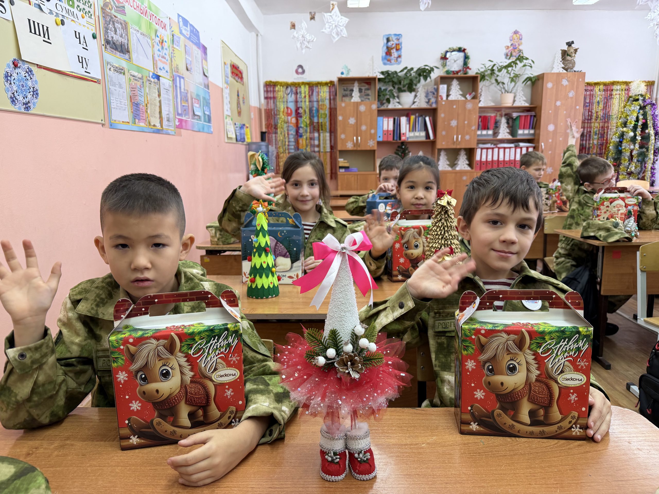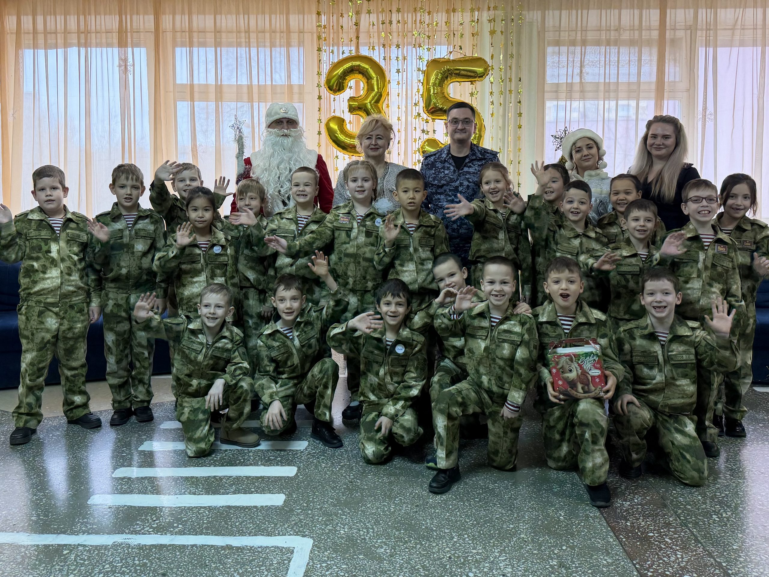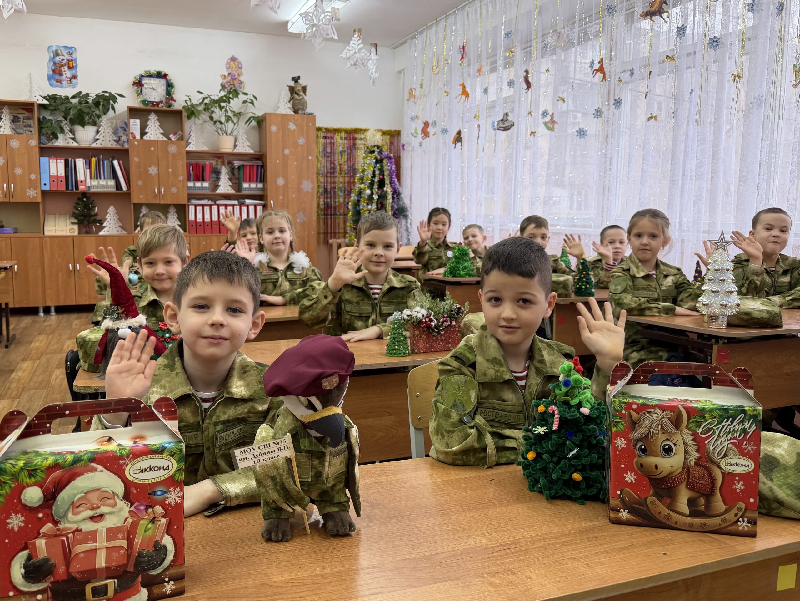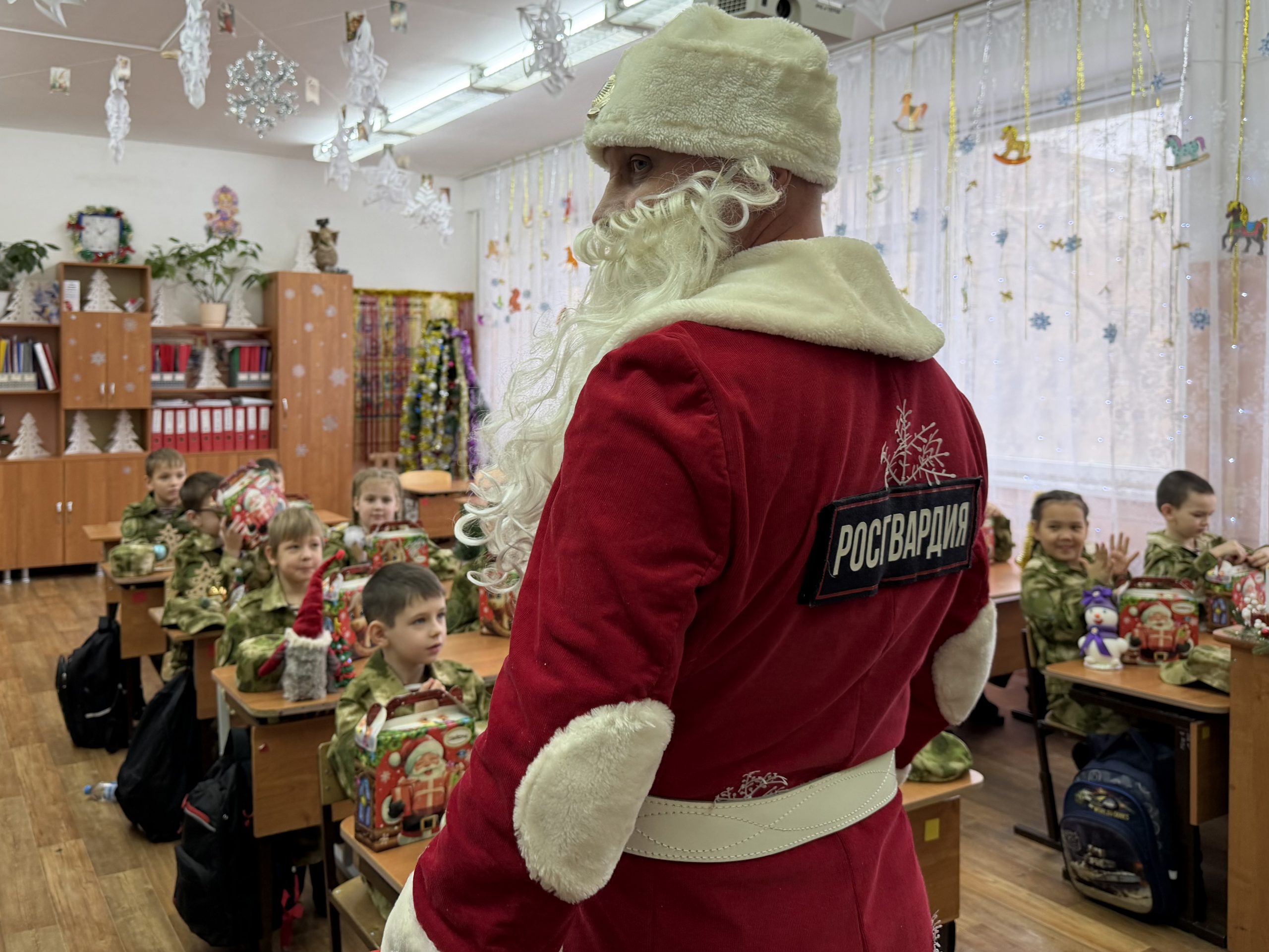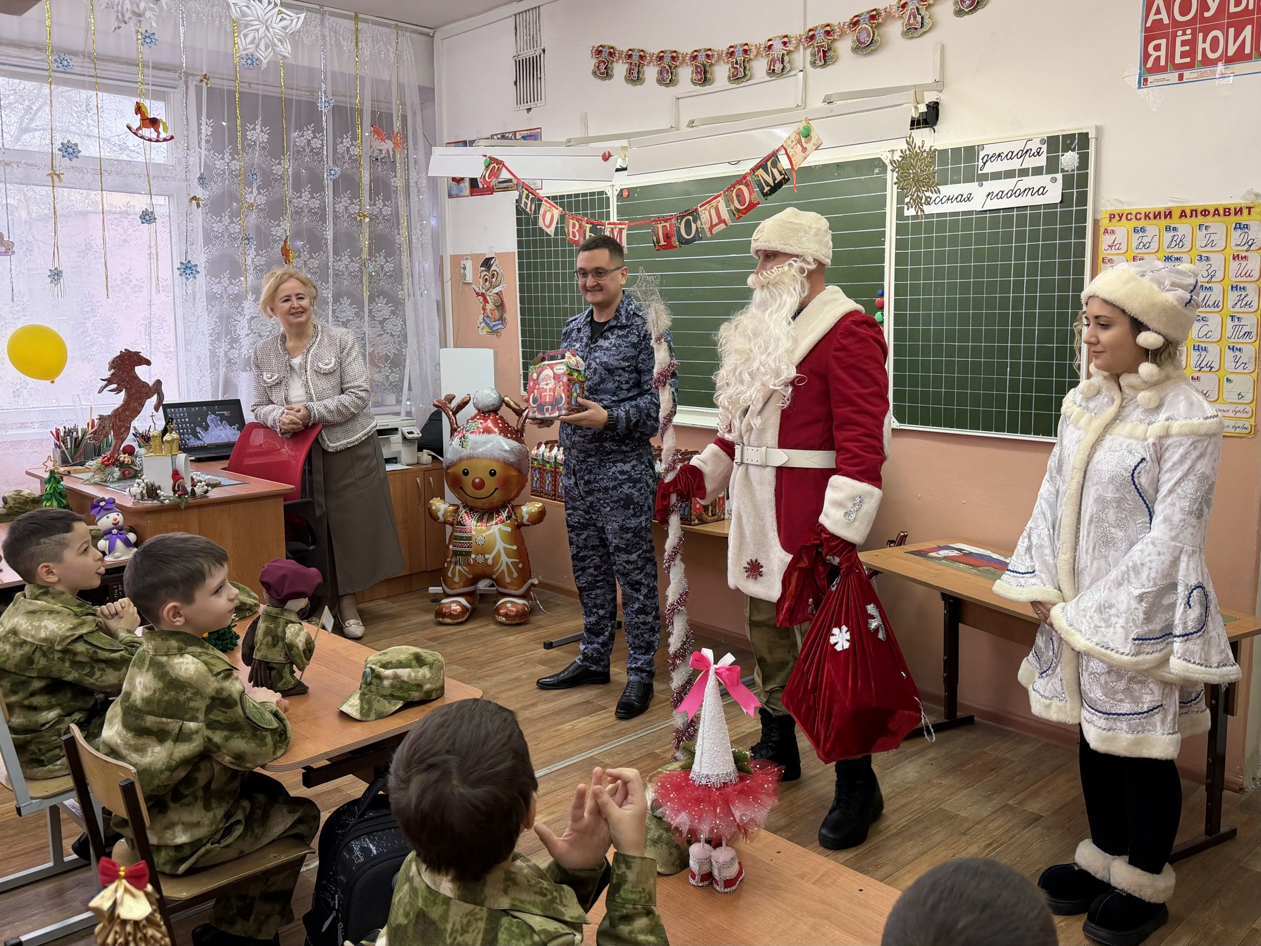 В преддверии новогодних праздников к учащимся школы №35 имени кавалера ордена Мужества старшего лейтенанта милиции Виталия Дубины города Волжского вместе со сказочными персонажами пришли военнослужащие Управления Росгвардии по Волгоградской области, которые шефствуют над юными кадетами.
